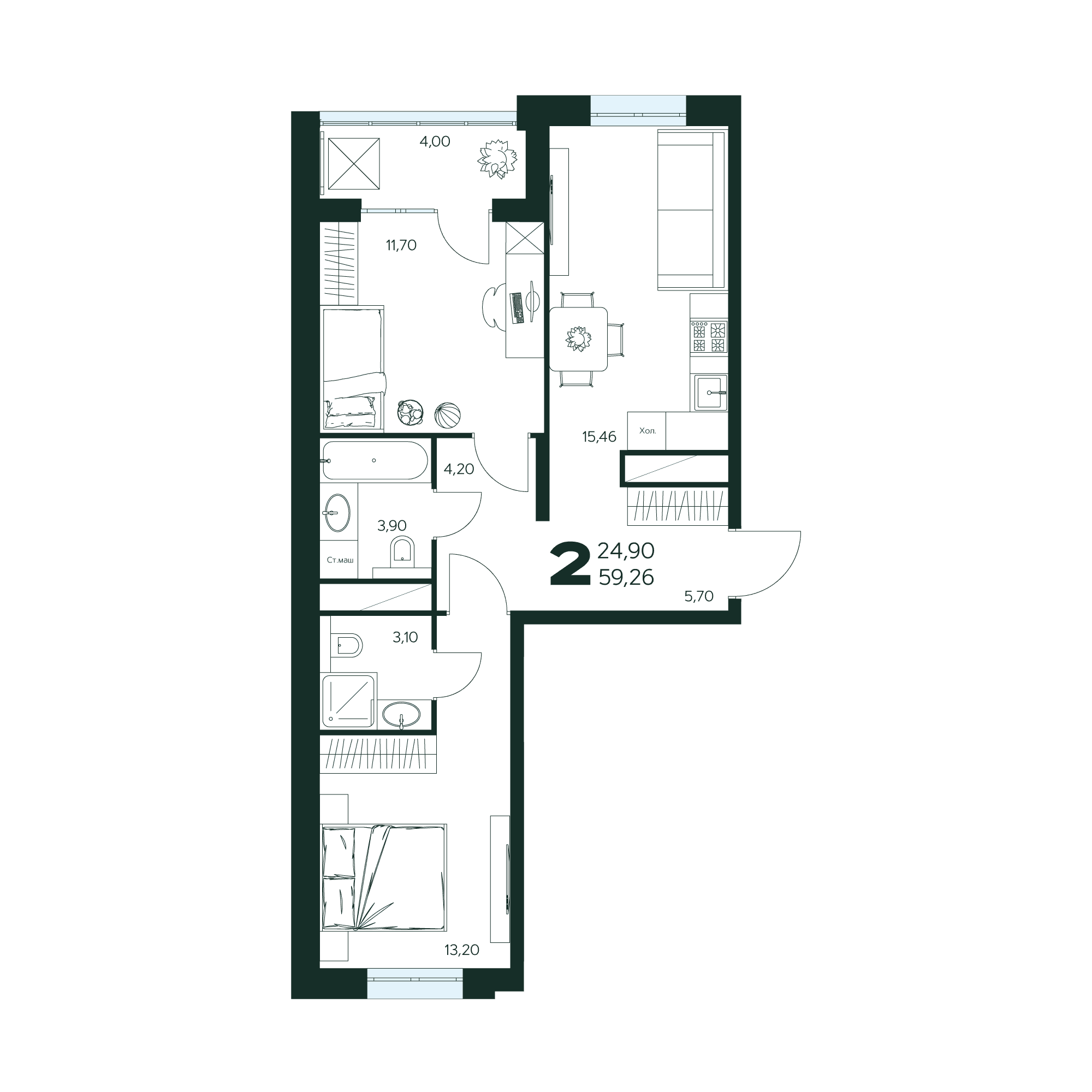 2-комнатная квартира № 24 59,26 м