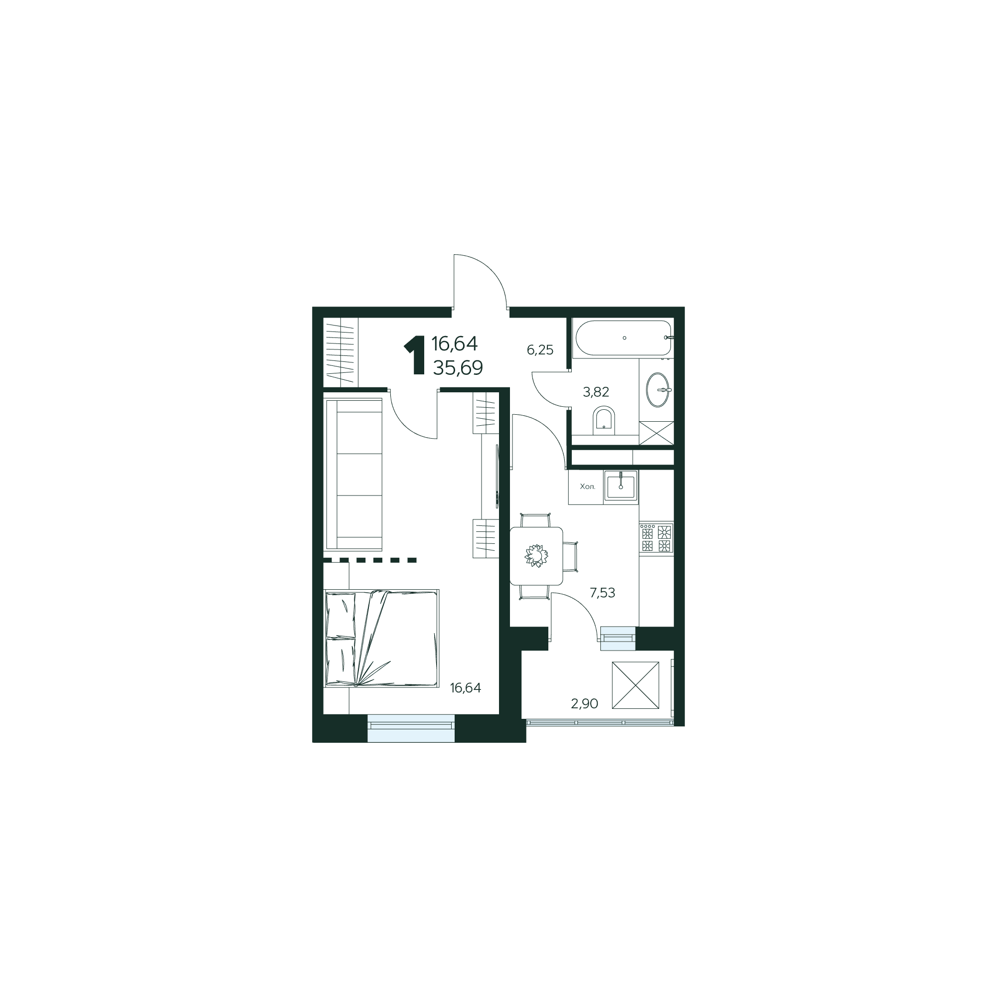 1-комнатная квартира № 54 35,69 м
