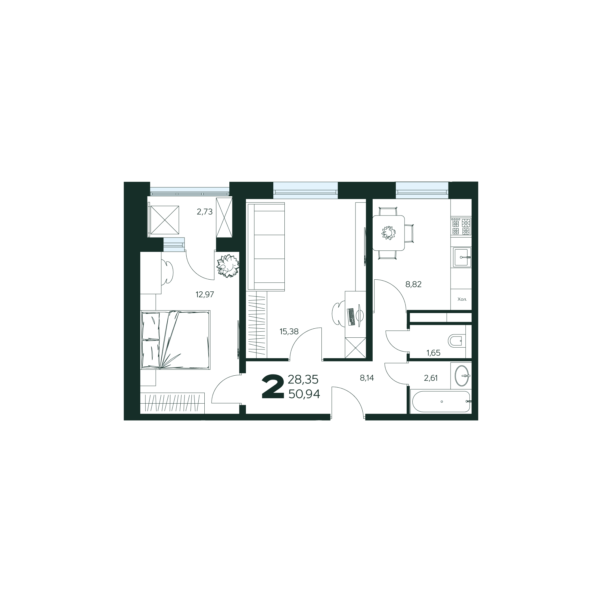 2-комнатная квартира № 62 50,94 м